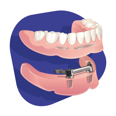 Deze oplossing is geschikt als u een volledige gebitsprothese draagt maar meer houvast wilt, of als u meerdere tanden of kiezen mist en een vaste brug niet (meer) mogelijk is. Het aantal implantaten en het type bevestiging bepalen we samen tijdens een consult.